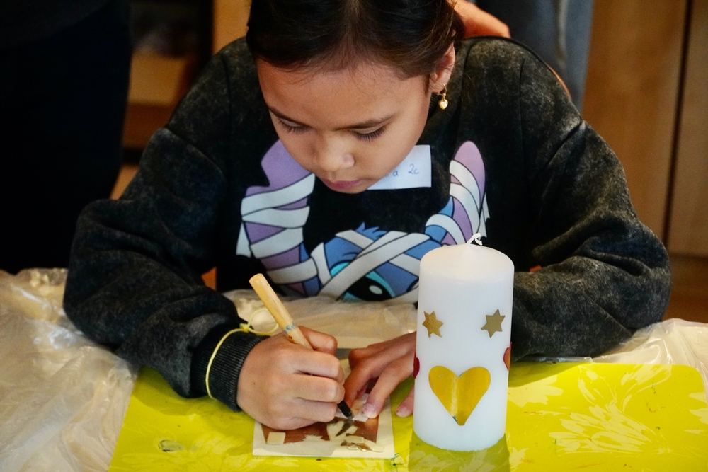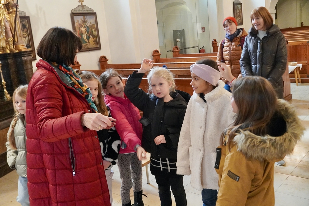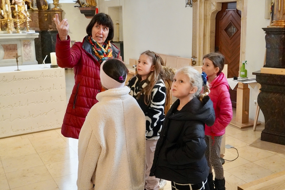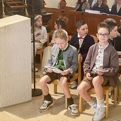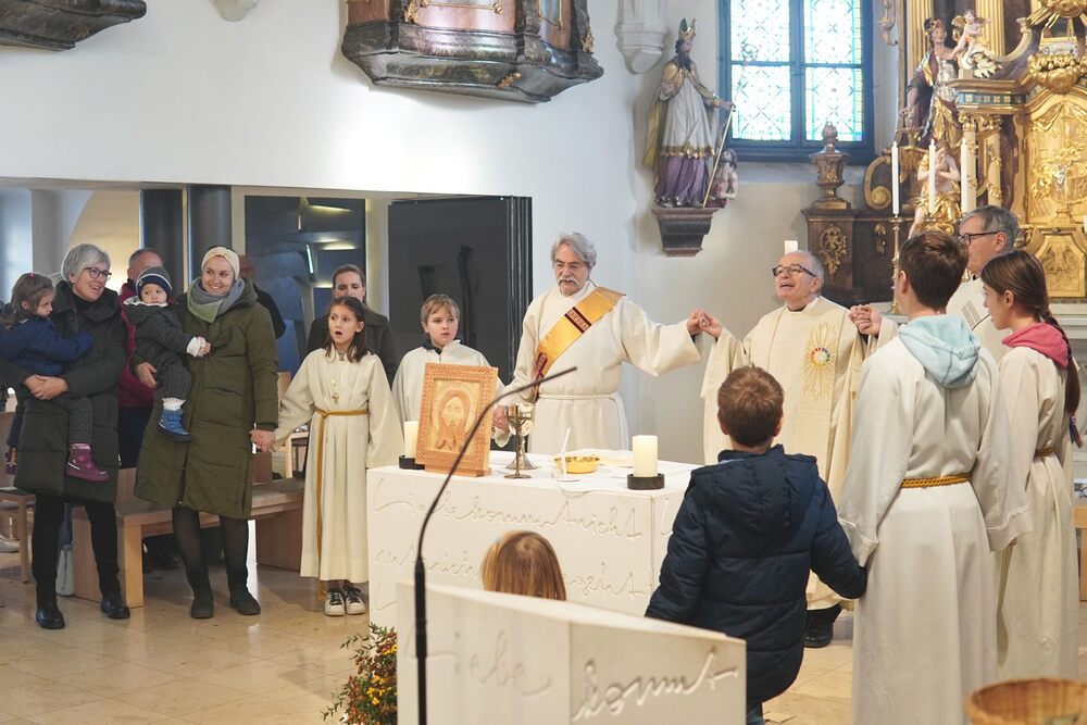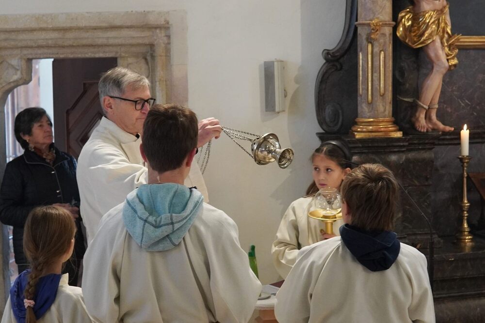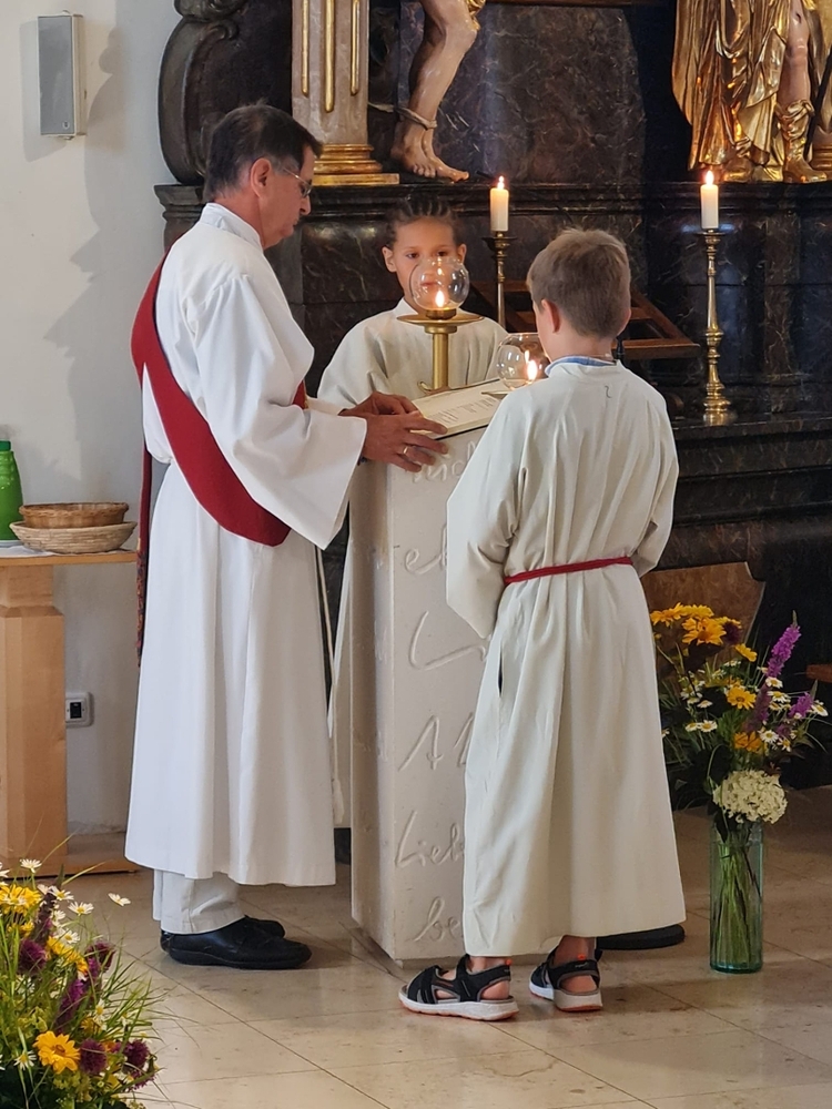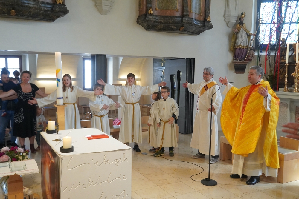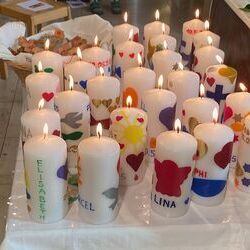Im Laufe des Tages gestalteten sie jeweils eine eigene Kerze, erkundeten die Kirche bei einer kindgerechten Kirchenführung und lernten die Abläufe der Heiligen Messe sowie die Messantworten auf unterhaltsame und spielerische Weise kennen.