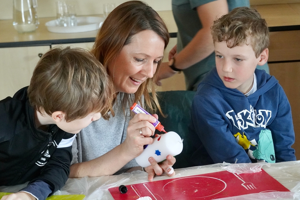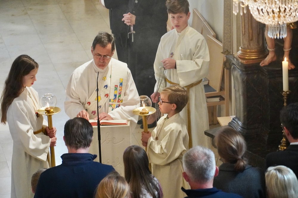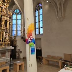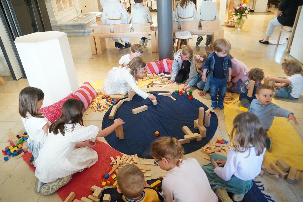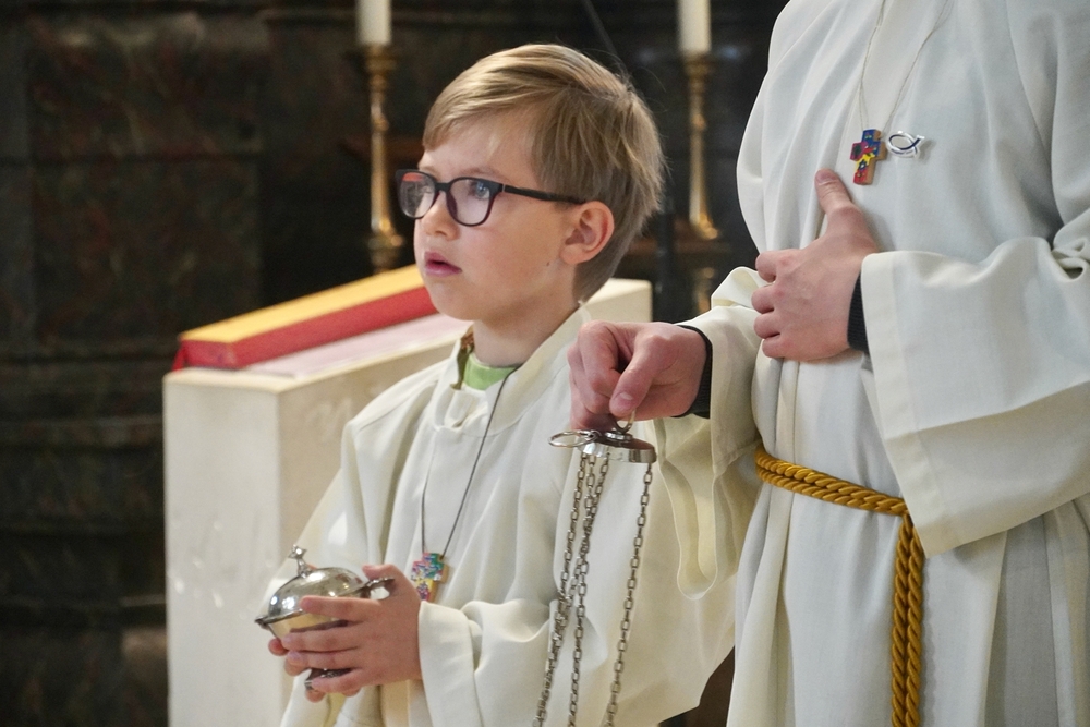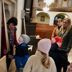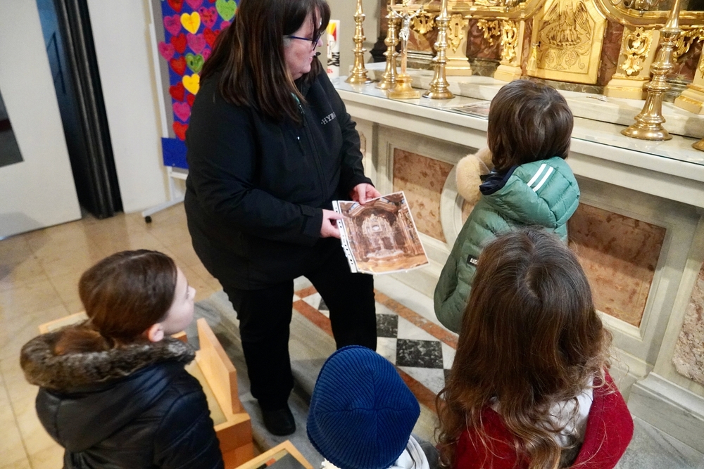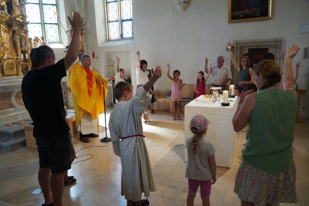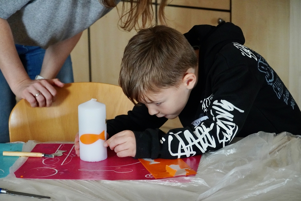 Im Laufe des Tages gestalteten sie jeweils eine eigene Kerze, erkundeten die Kirche bei einer kindgerechten Kirchenführung und lernten die Abläufe der Heiligen Messe sowie die Messantworten auf unterhaltsame und spielerische Weise kennen.