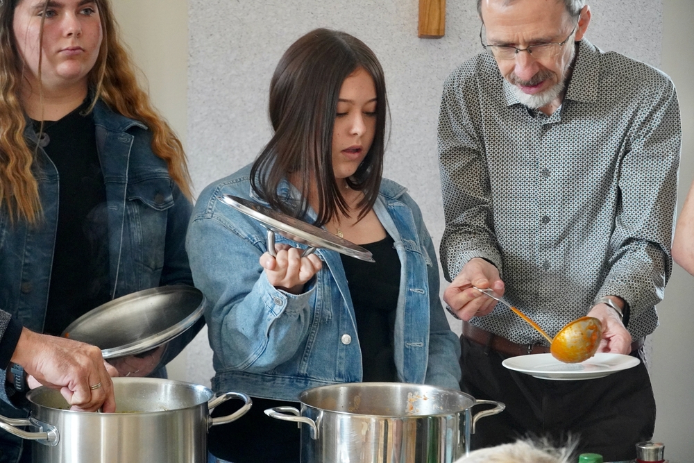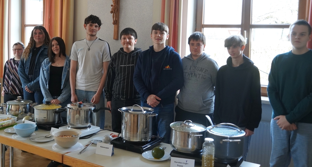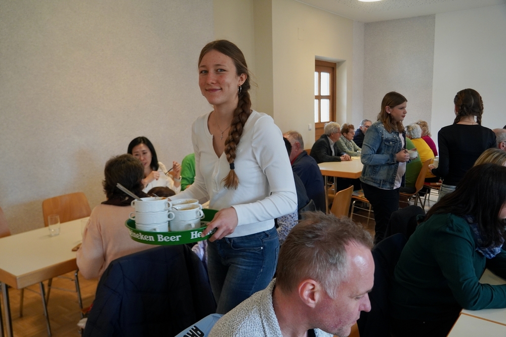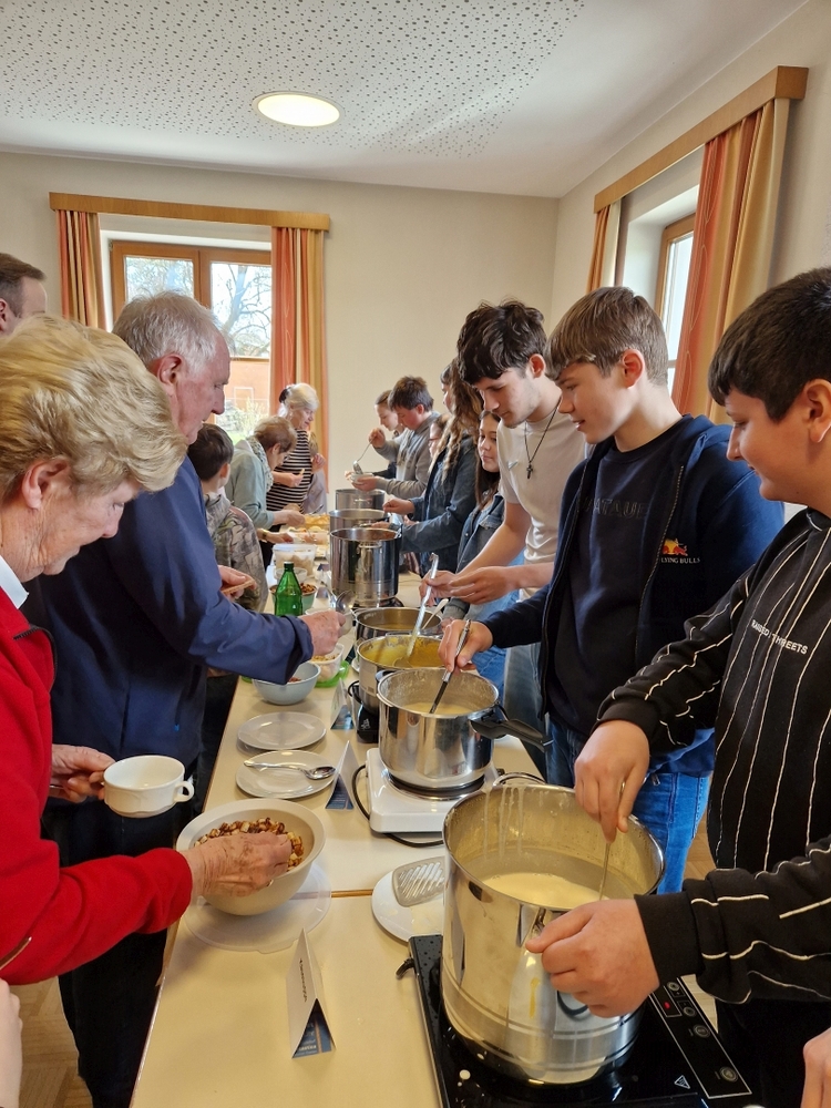 Die Firmlinge der Firmgruppe von Katrin Scheucher, Sylvia Glauninger und Martina Glauninger haben sich im Gottesdienst mit Kyrie-Gedanken und Fürbitten ganz persönlich eingebracht. Im Anschluss unterstützten die Firmlinge der Gruppe von Kurt Riedmüller beim Ausschenken der Suppen. Auch beim Zusammenräumen griffen alle beherzt zu. Es war für alle sehr schön, einen solch gemeinschaftlichen Sonntag-Vormittag zu erleben.