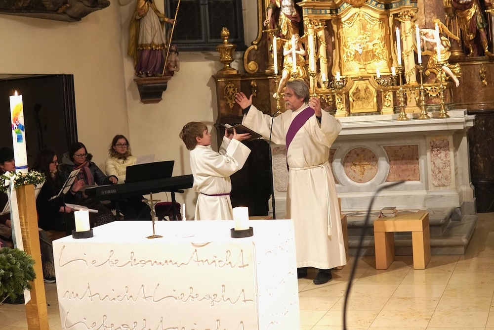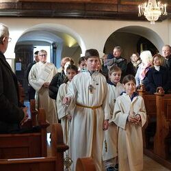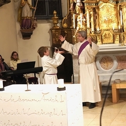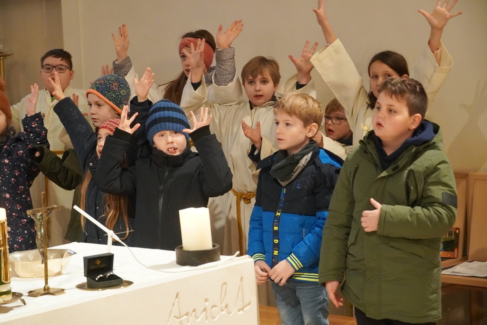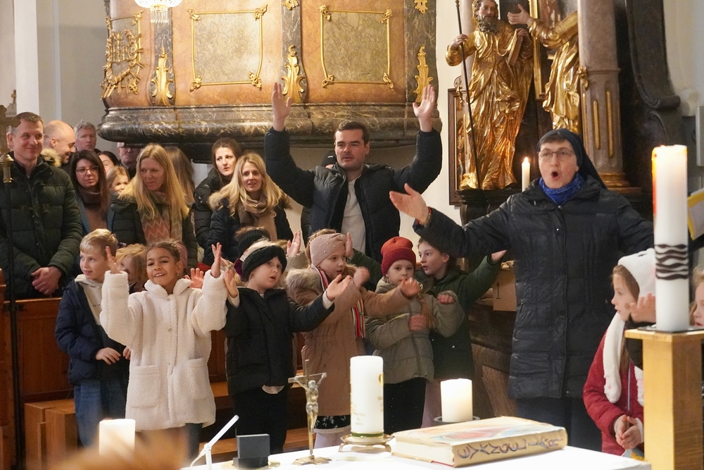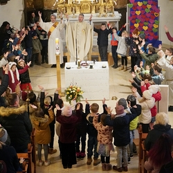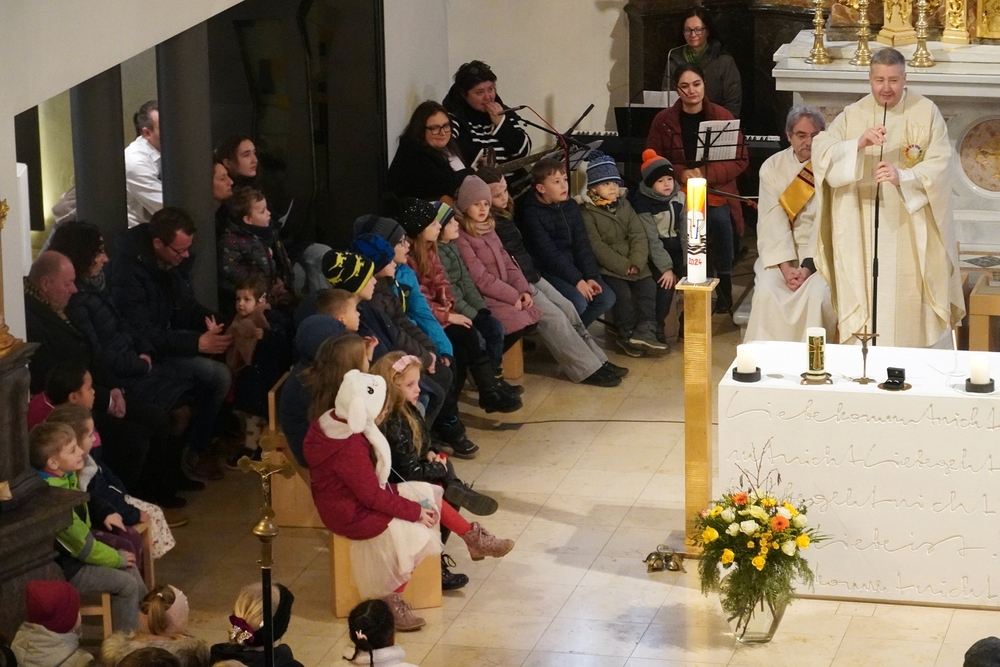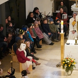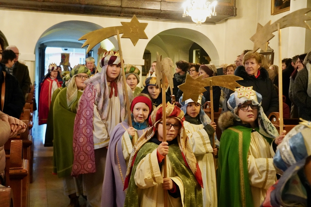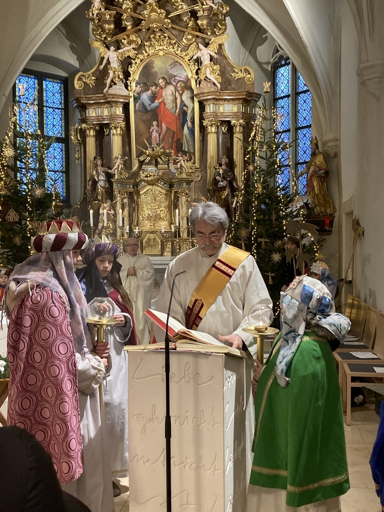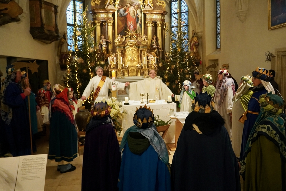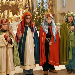 Am 6. Jänner zogen im Rahmen des Sternsingergottesdienstes noch zahlreiche Sternsinger in die Kirche ein und feierten die Heilige Messe zum Dreikönigstag mit Vikar Norbert Glaser und Diakon Michael Zepf.