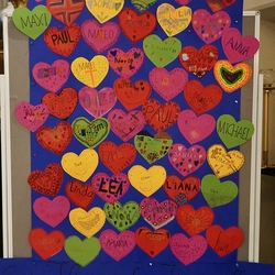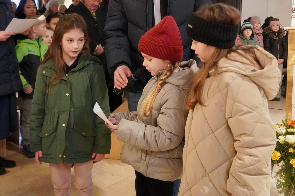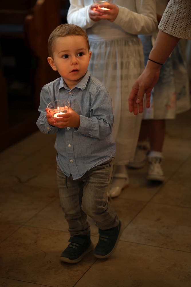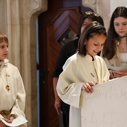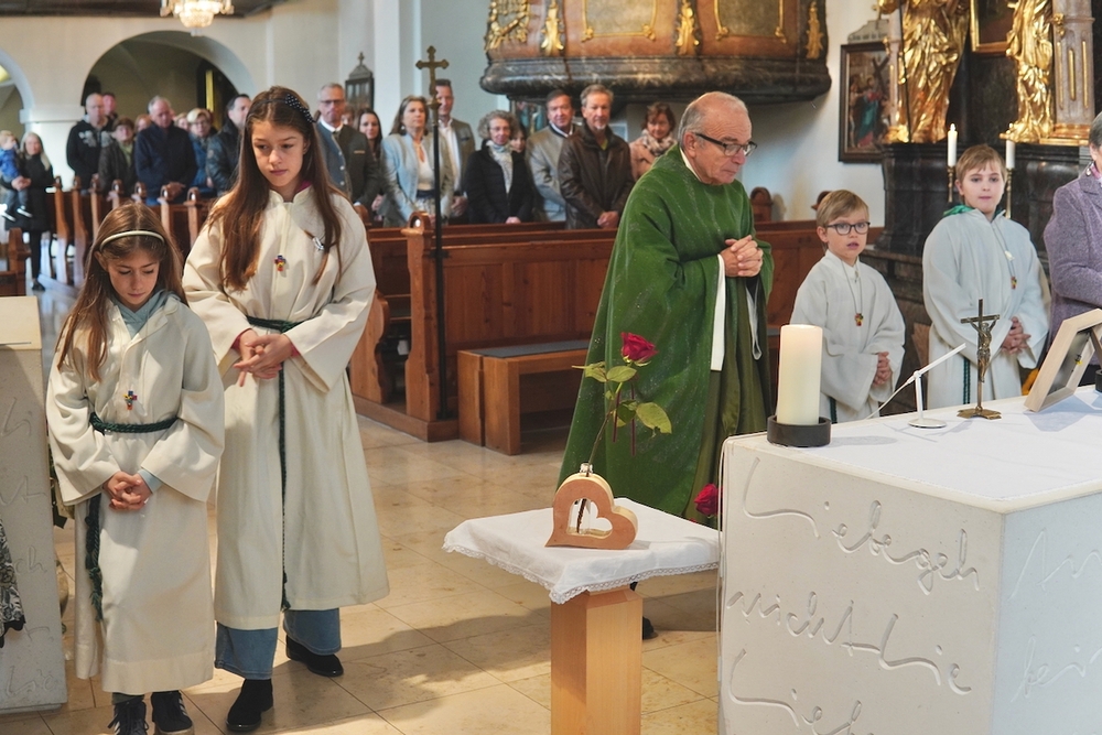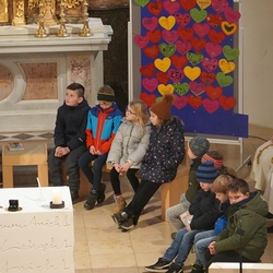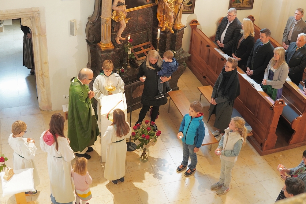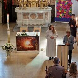 Als Lichtbringer- und Zukunftsbringer für die Pfarre sprach Pfarrer Claudiu Budau in seiner Predigt alle Erstkommunionkinder an. „Ihr seid unsere Hoffnung! Durch euch kommt Freude in die Welt!“ Die Geschichte in der Lesung erzählte von einem Kind auf der Suche nach einem goldenen Stern. Es durfte erfahren, dass es diesen Stern in seinem Herzen trägt. Eine ganze Pinnwand voller Herzen, für jedes Erstkommunionkind ein Herz mit seinem Namen darauf, steht nun bis zur Erstkommunion in unserer Pfarrkirche. Religionslehrer Josef Edelsbrunner lud ein, im Zuge der Vorbereitung zur Erstkommunion einmal in die Kirche zu kommen, ev. eine Kerze anzuzünden und mit oder für ein Erstkommunionkind zu beten.