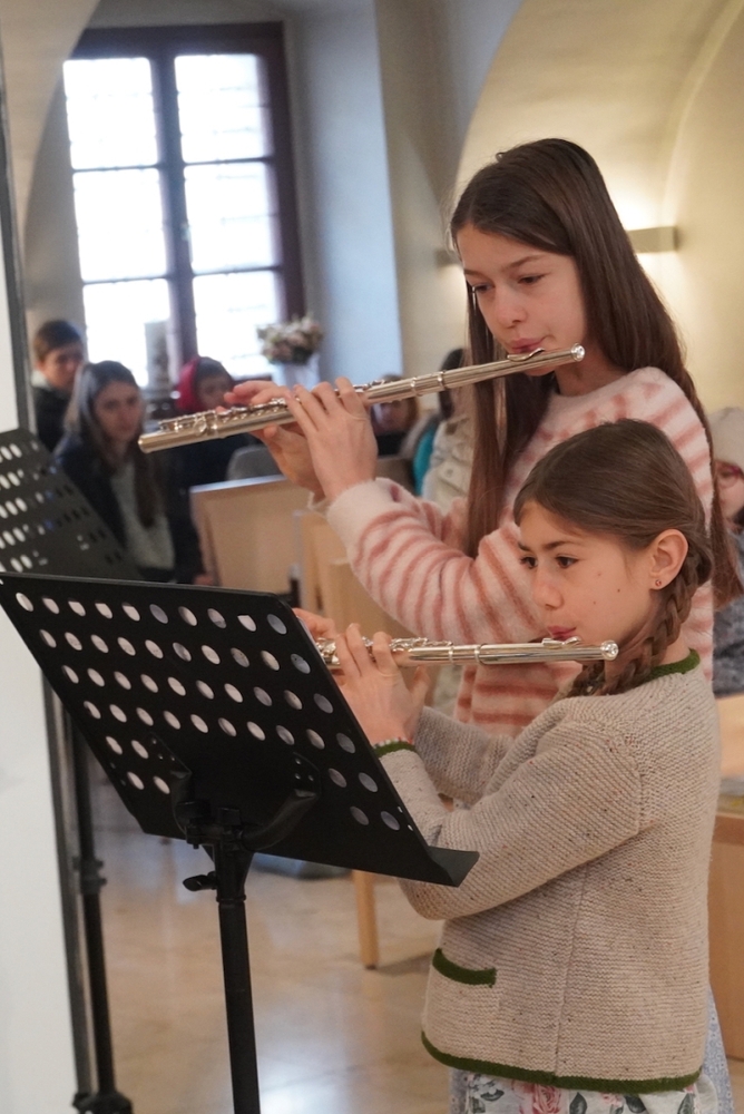 Die musikalische Gestaltung lag wieder in den Händen der Musikerinnen und Musiker der Musikschule Premstätten. Orgelmusik und Holzbläserensembles erfüllten die Kirche mit adventlichen Klängen und erfreuten alle Mitfeiernden.
