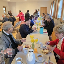 Der Sozialkreis der Pfarre Premstätten lud im Anschluss an den Gottesdienst zu Kaffee und Kuchen ins Pfarrheim, wo man die gelungene Aktion noch Revue passieren lassen und das 20-Jahr-Jubiläum von Vikar Norbert Glaser feiern konnte.