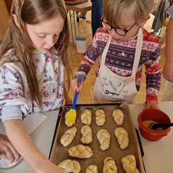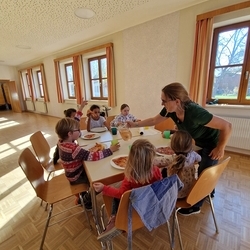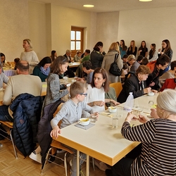 Auch für das leibliche Wohl war - dank einiger Mitglieder des Pfarrgemeinderates - bestens gesorgt. Während der Pausen konnten sich die Kinder mit Tee, Keksen, Kuchen und selbst gebackenem Striezel stärken. Für die begleitenden Eltern wurde zudem Kaffee bereitgestellt, sodass auch sie die Wartezeit in angenehmer Atmosphäre verbringen konnten.