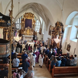 In der sehr gut besuchten heiligen Messe mit Pfarrer Friedrich Trstenjak, vielen Erstkommunionkindern und Firmlingen ging es im Evangelium um einen Feigenbaum, der keine Früchte tragen wollte. Er wurde aber nicht ausgerissen, sondern er bekam eine weitere Pflege und somit eine weitere Chance. Ein Bild dafür, wie Gottes Liebe zu uns Menschen zu verstehen ist.