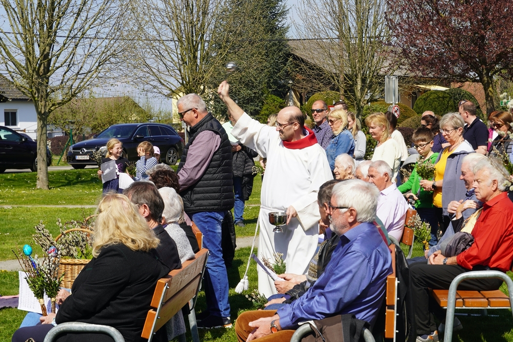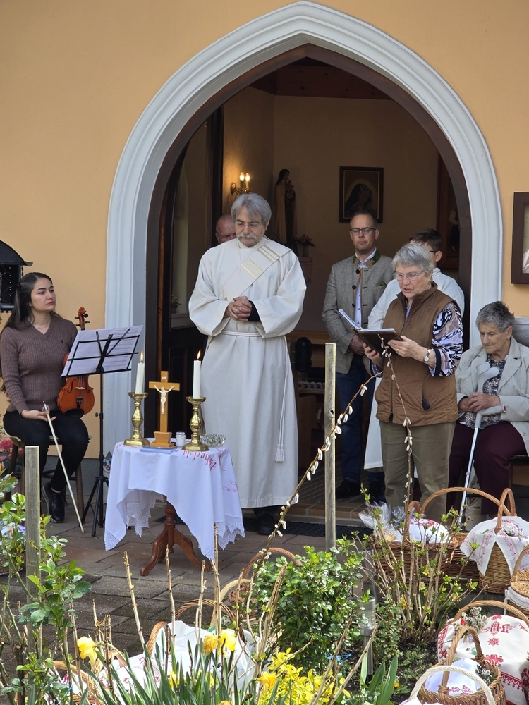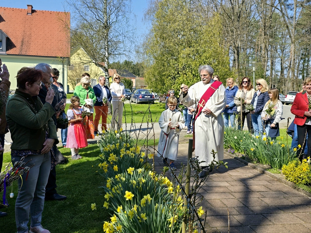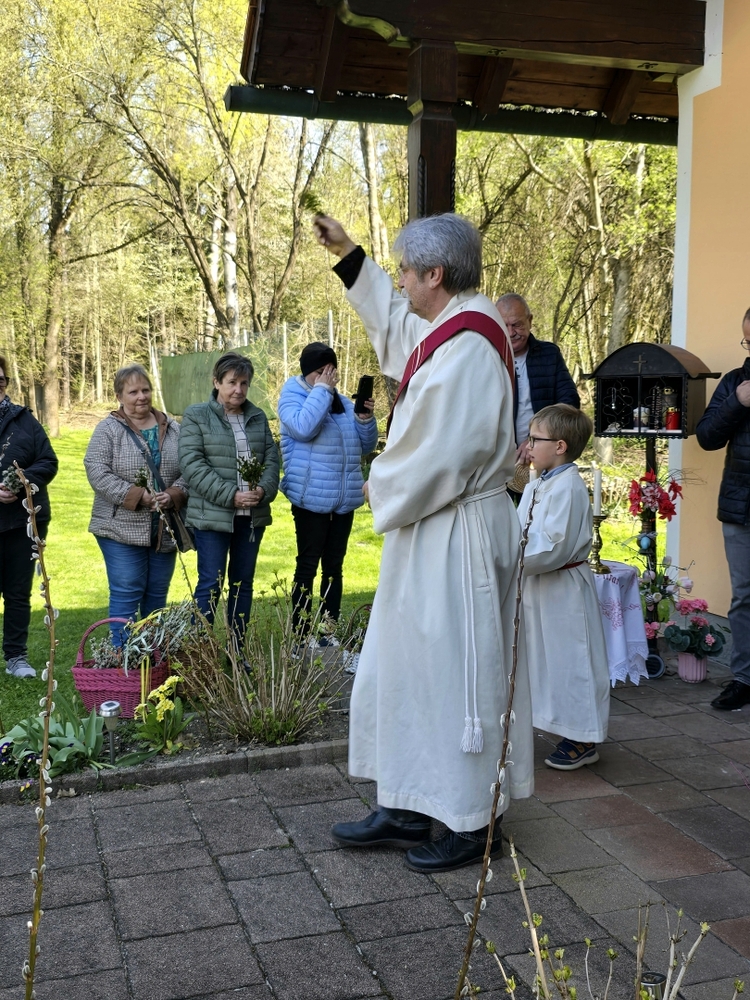 Schon am Palmsamstag fanden in der Kaiserwald-Kapelle und im Generationenpark Zettling Palmsegnungen statt, die Diakon Michi Zepf und Pastoralpraktikant Markus Artinger leiteten.