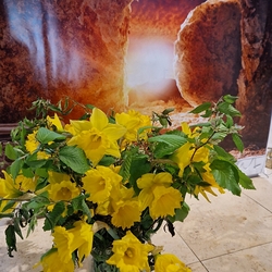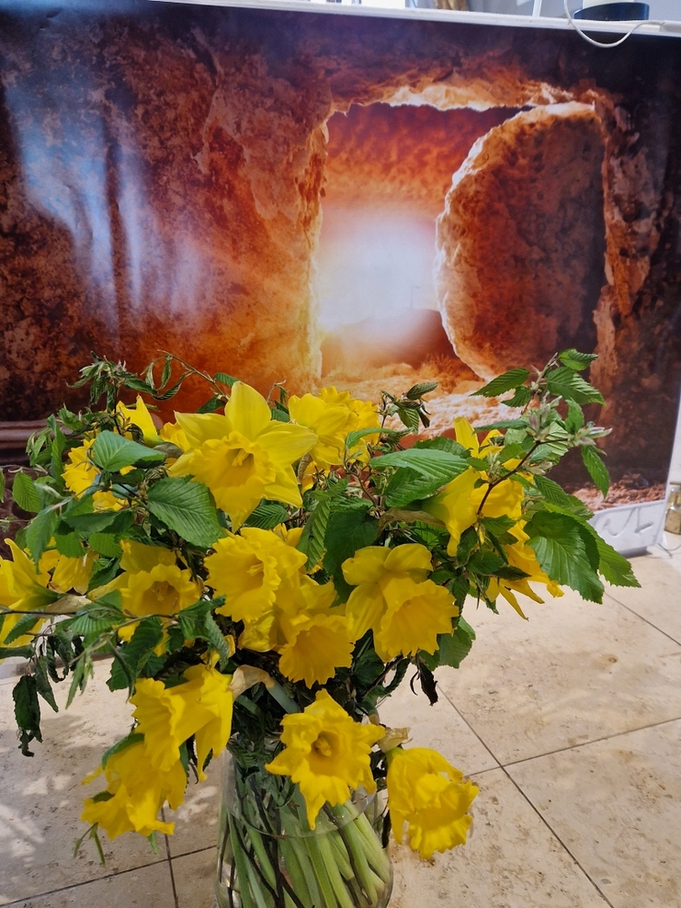 Das Gelb der Blumen gibt Hoffnung, dass es nicht beim Dunkel des Karfreitags bleibt. …