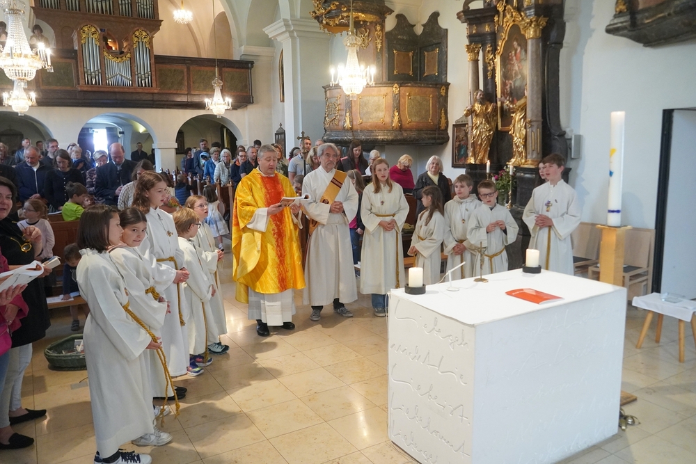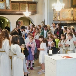Mit überraschend großem Eifer und viel Freude widmeten sich die diesjährigen Erstkommunionkinder diesen Aufgaben und ließen sich mit großer Begeisterung darauf ein.