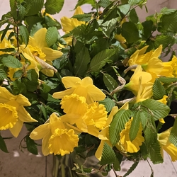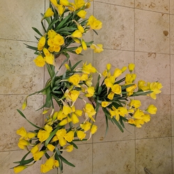 Alle Mitfeiernden waren bei der Kreuzesverehrung eingeladen, ihr persönliches Empfinden in die schöne Narzisse zu legen und zum enthüllten Kreuz zu tragen.