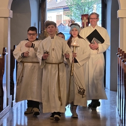 Zu gute Letzt, am Vortag des Gedenktages des Hl. Blasius wurde der Blasiussegen gespendet. Er soll wirksam sein gegen alle Krankheiten des Hals- und Rachenraumes. Und auch dieser Segen kommt nicht ganz ohne Licht aus, es braucht sogar zwei Kerzen dafür.