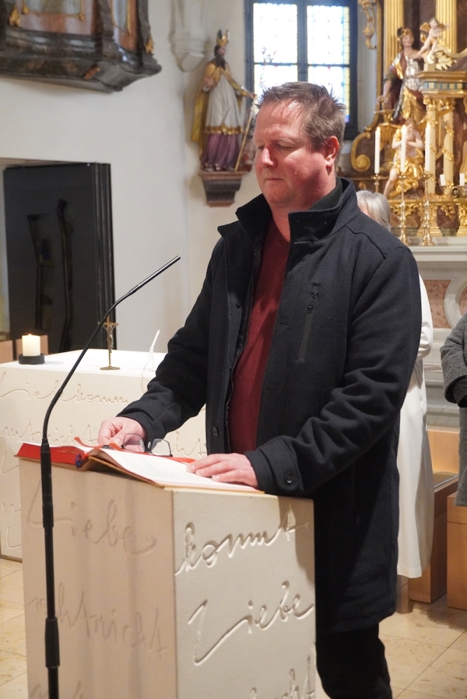 Nach dem feierlichen Einzug betonte Vikar Norbert in der Begrüßung, wie schön es ist, dass Johannes neben vielen anderen ehrenamtlichen Tätigkeiten (Kantor, Organist …) nun auch den Dienst des Diakons ausüben wird.