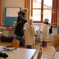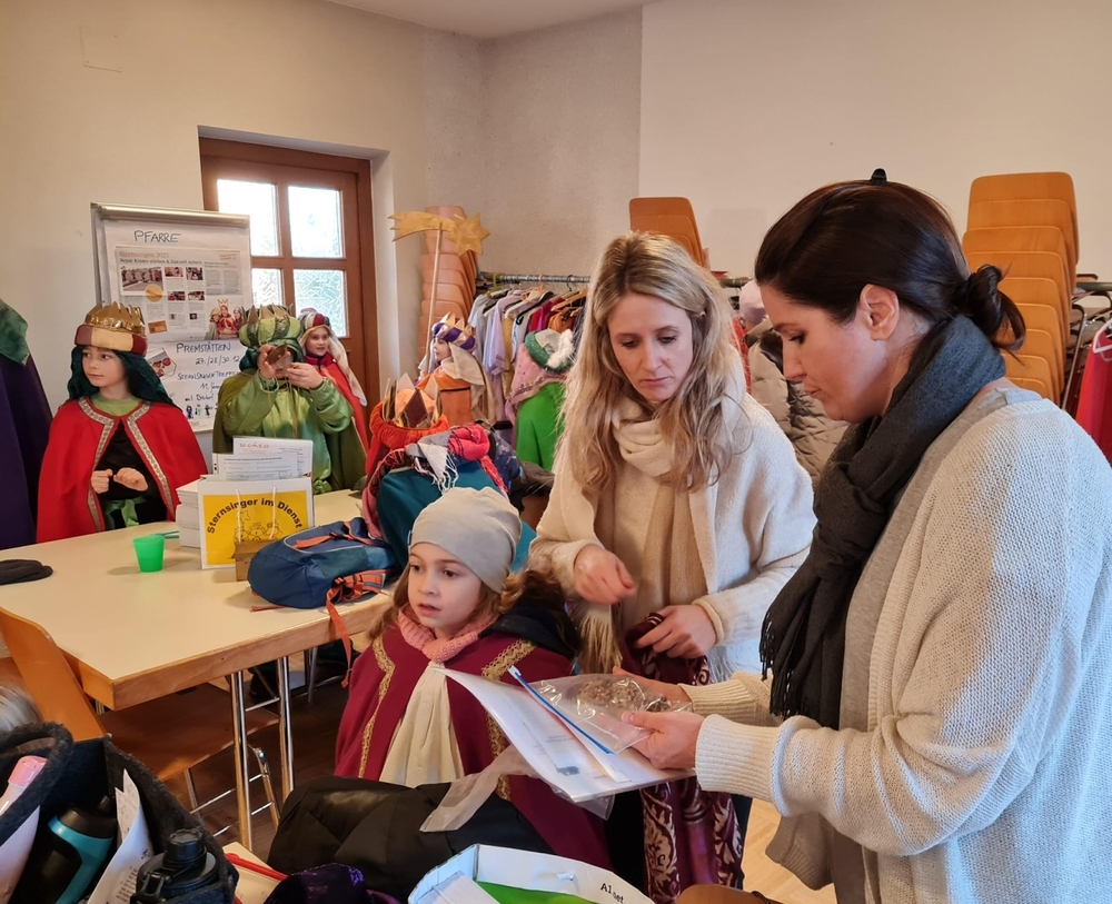Insgesamt 23 Gruppen wurden am 27., 28. und 30. Dezember 2024 im Pfarrheim eingekleidet sowie mit Stern, Kassa und Weihrauch ausgestattet, bevor sie, gesegnet durch Diakon Michael Zepf, in die zugeteilten Gebiete ausströmten. Kindergruppen wurden selbstverständlich von Erwachsenen begleitet.