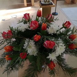 Mit einer Blume zum bevorstehenden Valentinstag wurden die Gottesdienstbesucher/innen bei der Sonntagsmesse am 13.02. überrascht.