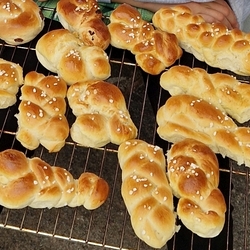 Auch heuer fanden sich am 31. Oktober wieder Kinder und Jugendliche aus der Pfarre Premstätten im Pfarrheim ein, um Striezerl zu backen. Mit viel Freude, Mehl und Elan wurden rund 8 kg Teig verknotet, geflochten, gelegt, mit Ei bestrichen, mit Hagelzucker bestreut und dann in verschiedensten Backöfen gebacken. Noch schnell eingepackt und schon konnten acht Minis am 1. November nach der Gräbersegnung - festlich gestaltet von Christa und Franz Habith - bei strahlendem Sonnenschein die Flechtgebilde unter den Mitfeiernden verteilen.