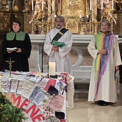 Gastgeber der röm. kath. Kirche war Diakon Michi Zepf, der zusammen mit Esther Handschin (Evangelisch-methodistische Kirche) und Ines Tobisch (Altkatholische Kirche) den Gottesdienst zelebrierte.