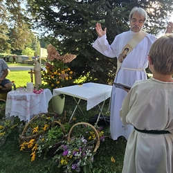 Zur Ehre der Gottesmutter und der Schöpfung segnete Diakon Michi Zepf am 15. August, dem "Großen Frauentag“, in einer Wort-Gottes-Feier in der Kaiserwald-Kapelle die mitgebrachten Kräuterbüschel.