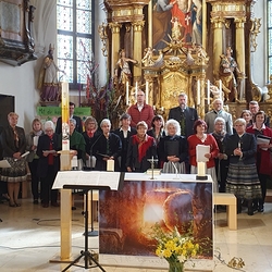 Diese Zuversicht und Freude kamen auch bei der heiligen Messe, die vom Gemeinschaftschor Premstätten - Wundschuh musikalisch gestaltet wurde, schön zum Ausdruck. Unter der Leitung von Stefan Strampler wurde die schwungvolle "Messe für Chor, Trompete und Rhythmusgruppe" von Gerhard Schacherl gesungen und von einer tollen Musikgruppe begleitet.