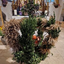 Ein herzliches Danke allen, die so schön mitgestaltet und mitgefeiert haben: Dies waren die Kindergartenkinder (Erntedank Tanz), die Minis und MS-Schüler*innen (Zeichenhandlung mit Erntegaben), die Landjugend (Erntekrone), die Musikgruppe (begeisternde Musik) und viele mehr.