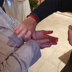 Der Text „Die kleine und die große Hand“ verdeutlicht, wie sehr wir einander brauchen, Groß und Klein, und wie wertvoll wir füreinander sind. Auch wissen wir - „Hände, die schenken, erzählen von Gott!“