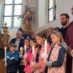 Am 22. April feierten die Erstkommunionkinder nach ihrem letzten Workshopnachmittag ihr Tauferneuerungsfest um 16:30 Uhr in unserer Pfarrkirche.