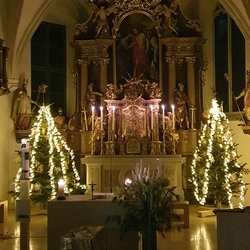 Der besondere Abschluss jeder Christmette ist wohl das Lied "Stille Nacht, heilige Nacht", welches in der dunklen Kirche, die nur durch den Schein der Christbäume beleuchtet ist, gesungen wird.