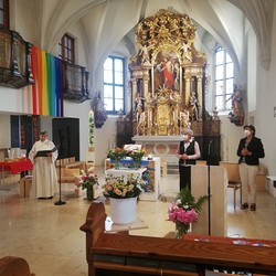 „Hl. Geist-Feeling“ durchströmte unsere Kirche am Pfingstsonntag bei der Wortgottesfeier mit Anja Asel und Ines Kvar! In einer begeisternden Pfingstpredigt in Dialogform brachten sie der versammelten Gemeinde Wesen und Wirkkraft des Heiligen Geistes nahe. Die schönen Texte, die feierlichen Lieder der Chorsängerinnen, der langsam wieder aufkeimende Gemeindegesang und das festliche Orgelspiel unserer Organistin Magdalena Moser ließen die WGF zu einem Pfingsterlebnis werden!