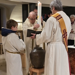 Bei Dunkelheit zogen wir mit der brennenden Osterkerze in die Kirche ein – Lumen Christi, Deo gratias!